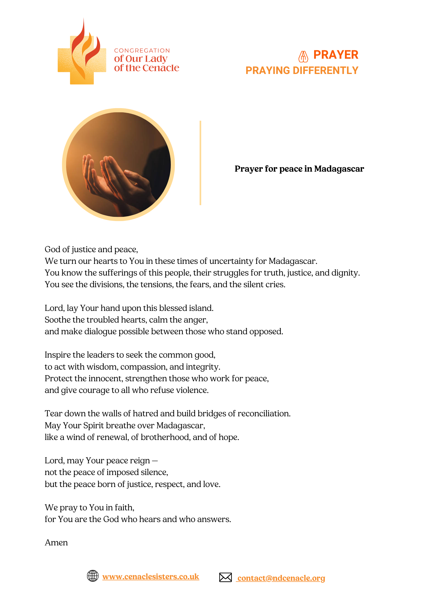 God of justice and peace, we turn our hearts to You in these times of uncertainty for Madagascar.
